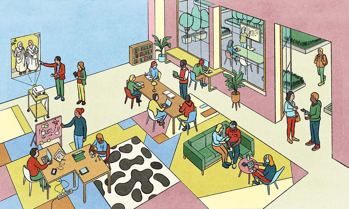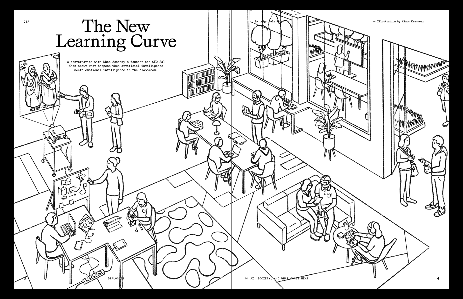 llustration for Dialogues, a magazine exploring the impact of AI on society. Produced alongside Google, The Atlantic’s creative marketing studio Re:think brought together journalists, technologists, artists, scientists, and academics for a series of thoughtful conversations about what comes next.